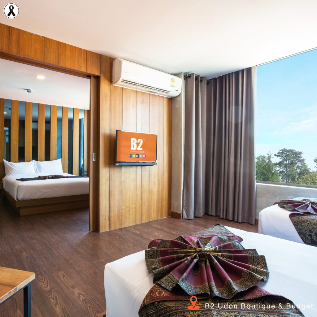 B2 Hotel Group offers two great accommodation options in Udon Thani — B2 Udon Premier Hotel and B2 Udon Boutique & Budget Hotel. Both hotels are conveniently located near Udon Thani Rajabhat University (Sam Phrao Campus), making it easy for graduates and their families to attend the Royal Graduation Ceremony. They are also close to the city’s main attractions such as Nong Prajak Public Park, Wat Phothisomphon, Udon Thani Museum, Udon City Pillar Shrine, and major shopping malls. Whether you’re here to celebrate or explore, B2 Hotels offer the perfect combination of comfort, convenience, and value for your stay in Udon Thani.