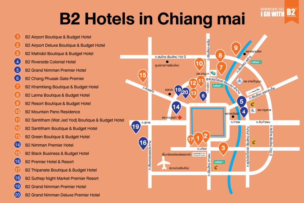 If you are looking for a hotel near Chiang Mai University (CMU) or accommodation that is ideal for attending a graduation ceremony, B2 Hotels in Chiang Mai offer the perfect choice. Whether you are staying for the Chiang Mai University graduation or planning to relax and explore the city’s top attractions—such as Nimmanhaemin Road, Tha Phae Gate, Doi Suthep, the Chiang Mai Night Bazaar, or shopping areas in the city center—B2 is here to make every moment of your Chiang Mai trip filled with comfort, convenience, and memorable experiences.