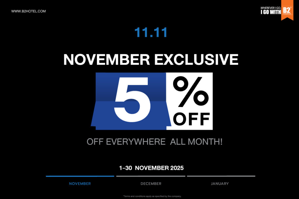 B2 Hotel’s 11.11 Special Promotion is Back! Enjoy Comfortable Stays Across Thailand with an Instant 5% Discount When Booking Online