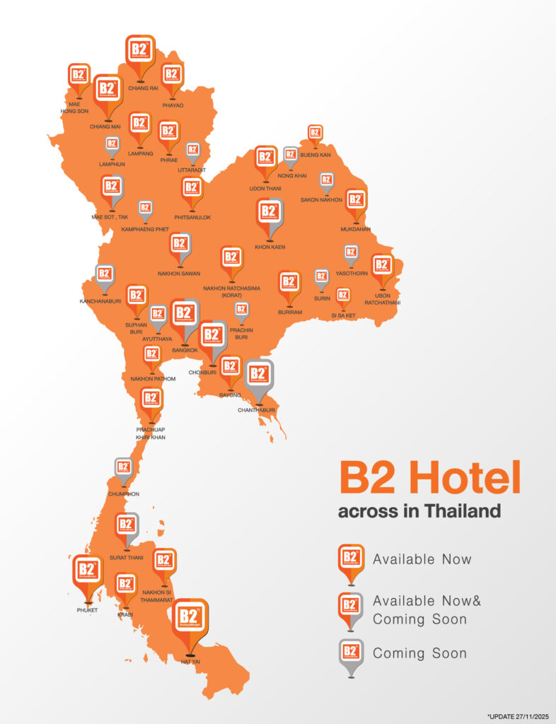 แผนที่เครือโรงแรมบีทูทั่วประเทศ