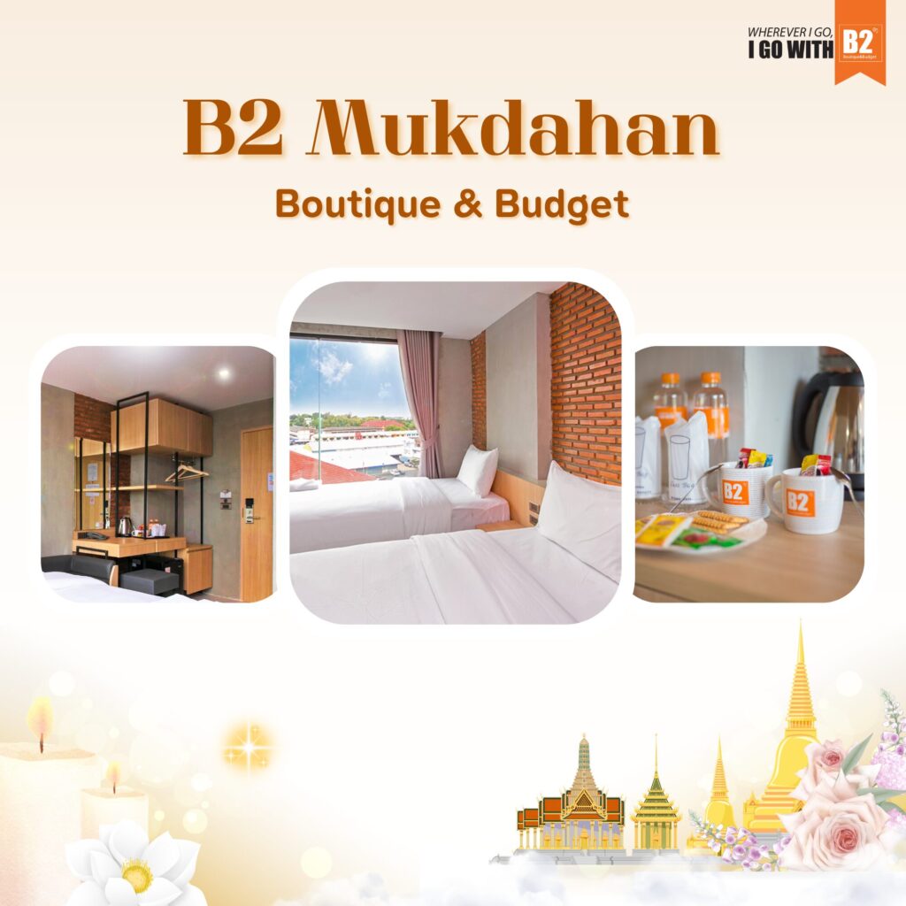 สำหรับนักท่องเที่ยวที่ต้องการ ชมงานประเพณีออกพรรษาเต็มวัน โรงแรมบีทู มุกดาหาร บูติค แอนด์ บัดเจท คือที่พักที่ตอบโจทย์ที่สุด ห้องพักกว้างขวาง ตกแต่งอบอุ่น มีสิ่งอำนวยความสะดวกครบครัน พร้อมมอบความสะดวกสบายตั้งแต่เช้าจรดค่ำ ตัวโรงแรมตั้งอยู่ใกล้ เขื่อนแม่น้ำโขง และสถานที่จัดงาน อีกทั้งยังรายล้อมด้วยแหล่งท่องเที่ยวสำคัญของมุกดาหาร ทำให้คุณสามารถเดินทางไปชมกิจกรรมและสถานที่ท่องเที่ยวได้ง่าย ๆ หลังจากสนุกกับงานประเพณีแล้ว ยังสามารถกลับมาพักผ่อนอย่างสบายในบรรยากาศเงียบสงบและเป็นส่วนตัว