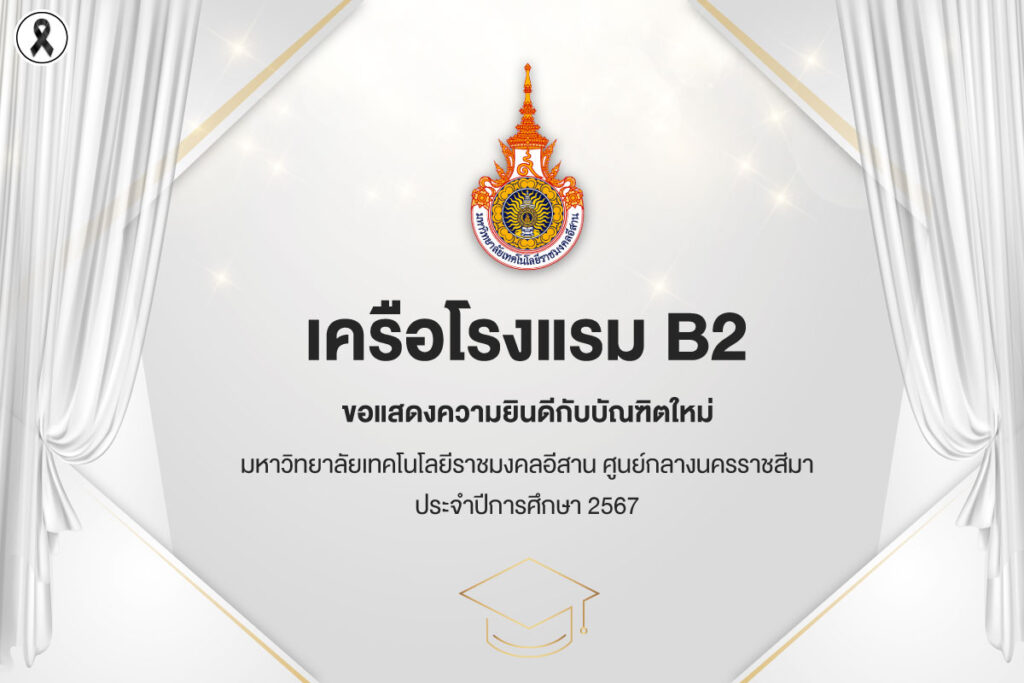 วันที่ 28 พฤศจิกายน 2568 จะเป็นอีกหนึ่งวันสำคัญของบัณฑิตจากมหาวิทยาลัยเทคโนโลยีราชมงคลอีสาน ศูนย์กลางนครราชสีมา ที่จะเข้าร่วมพิธีพระราชทานปริญญาบัตร ครั้งที่ 39 ประจำปีการศึกษา 2567 ณ อาคารเฉลิมพระเกียรติในโอกาสฉลองพระชนมายุ 5 รอบ 2 เมษายน 2558 ศูนย์การศึกษาหนองระเวียง จังหวัดนครราชสีมา วันแห่งความภาคภูมิใจนี้คือผลลัพธ์ของความมุ่งมั่น ความพยายาม และแรงสนับสนุนจากครอบครัวที่อยู่เคียงข้างในทุกช่วงเวลา เครือโรงแรม B2 ขอร่วมแสดงความยินดีในความสำเร็จครั้งยิ่งใหญ่ของบัณฑิตทุกท่าน ขอให้ปริญญาบัตรใบนี้เป็นสัญลักษณ์แห่งความภาคภูมิใจ และเป็นพลังสำคัญในการเริ่มต้นเส้นทางใหม่ที่เต็มไปด้วยโอกาส ความสำเร็จ และความสุขในทุกย่างก้าวของชีวิต