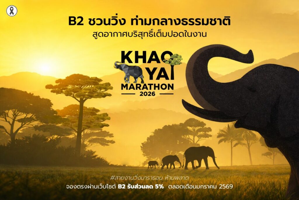 สำหรับใครที่หลงใหลการออกกำลังกาย รักการวิ่ง และกำลังมองหางานวิ่งที่ผสานทั้งสุขภาพและการท่องเที่ยวเข้าด้วยกัน B-Quik Khao Yai Marathon 2026 คือหนึ่งใน งานวิ่งมาราธอนเขาใหญ่ ที่ไม่ควรพลาด ด้วยเสน่ห์ของเส้นทางวิ่งที่โอบล้อมด้วยขุนเขา ผืนป่า และธรรมชาติอันอุดมสมบูรณ์ของเขาใหญ่ นักวิ่งจะได้สูดอากาศบริสุทธิ์เต็มปอดตั้งแต่ก้าวแรกที่ออกสตาร์ท เหมาะทั้งนักวิ่งมืออาชีพและผู้ที่อยากเริ่มต้นดูแลสุขภาพผ่านการวิ่งท่ามกลางธรรมชาติ พร้อมเติมเต็มวันวิ่งให้สมบูรณ์ยิ่งขึ้นด้วยการพักผ่อนคุณภาพจาก B2 ที่พร้อมเปลี่ยนวันแข่งขันให้กลายเป็นทริปพักผ่อนอย่างมีคุณค่า และสำหรับสายวิ่งห้ามพลาด! ตอนนี้ B2 มีโปรโมชันลด 5% ทั้งเว็บไซต์ ตลอดเดือนมกราคม สำหรับการจองและเข้าพักระหว่างวันที่ 1–31 มกราคม 2569 ให้คุณวางแผนทั้งการวิ่งและการพักผ่อนได้อย่างลงตัวในทริปเดียว