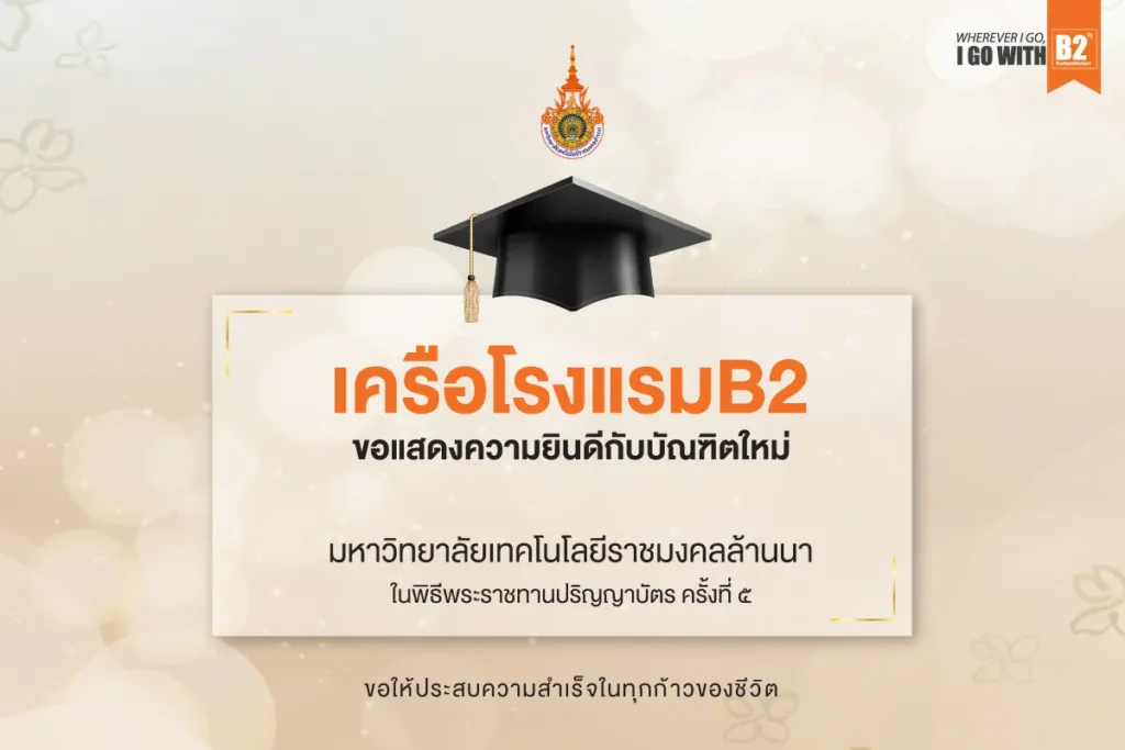เครือโรงแรม B2 ขอแสดงความยินดีกับบัณฑิตใหม่ มหาวิทยาลัยเทคโนโลยีราชมงคลล้านนา ในพิธีพระราชทานปริญญาบัตร ครั้งที่ ๕ ขอให้ประสบความสำเร็จในทุกก้าวของชีวิต