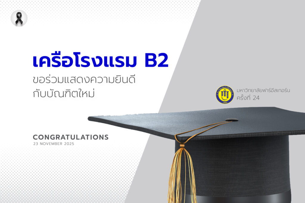 เครือโรงแรม B2 ขอแสดงความยินดีในความสำเร็จของบัณฑิตใหม่ มหาวิทยาลัยเทคโนโลยีราชมงคลอีสาน ศูนย์กลางนครราชสีมา ประจำปีการศึกษา 2567
